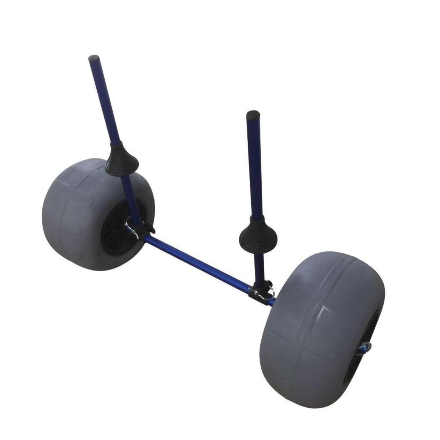 A high quality, durable and lightweight kayak trolley for both single and double sit on top kayaks. Made from corrosion resistant marine grade anodised aluminium, Rubber pads, 92 x 32 x 21 cms, 30 cms pneumatic balloon wheels, Max weight 45kgs, Product weight 6.5kgs , Colour – Blue, Made from corrosion resistant marine grade anodised aluminium