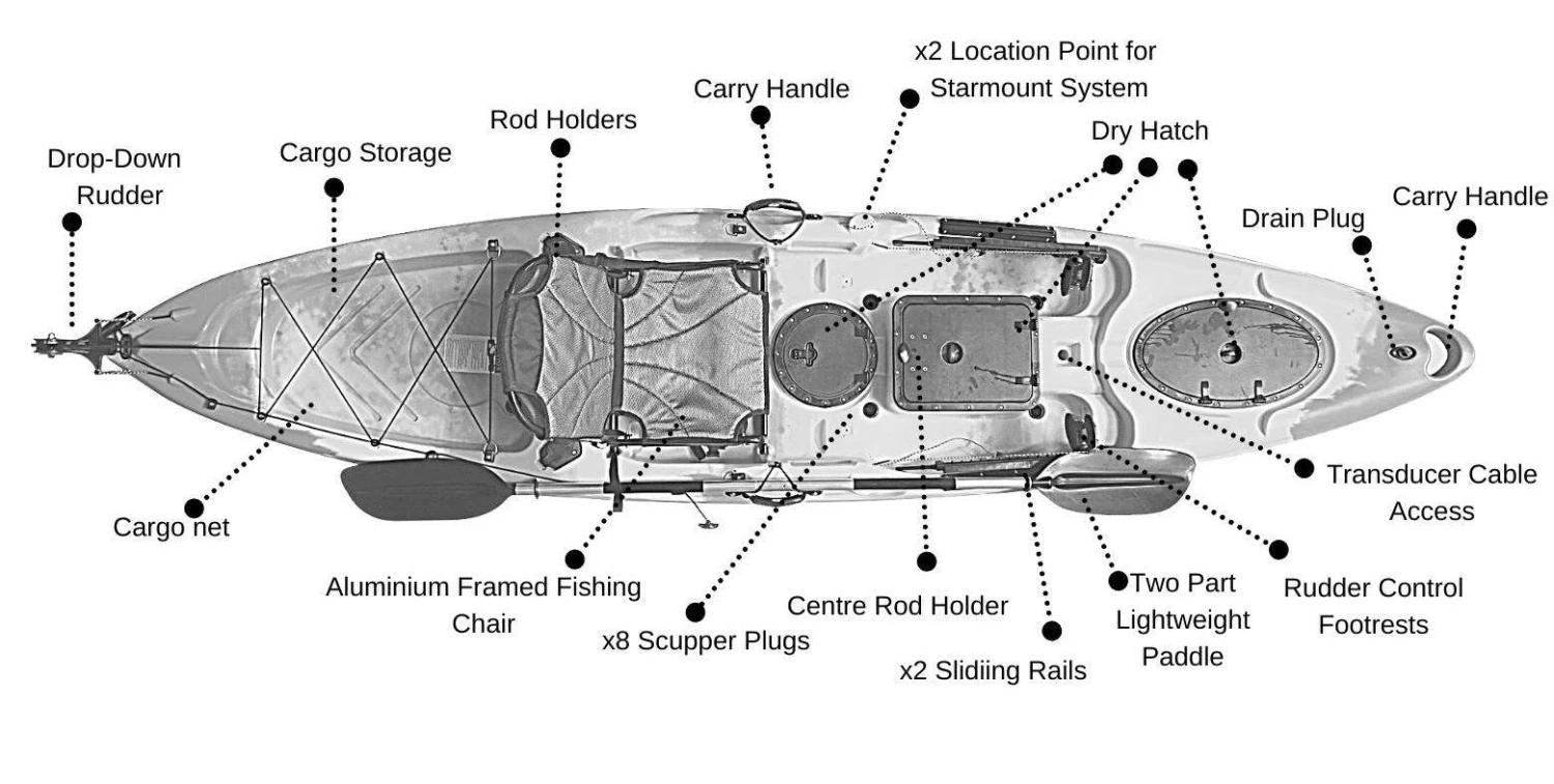 This sit-on-top fishing kayak has plenty of storage with a good capacity with large hatches allowing you to access the hull for adding electronic equipment.
