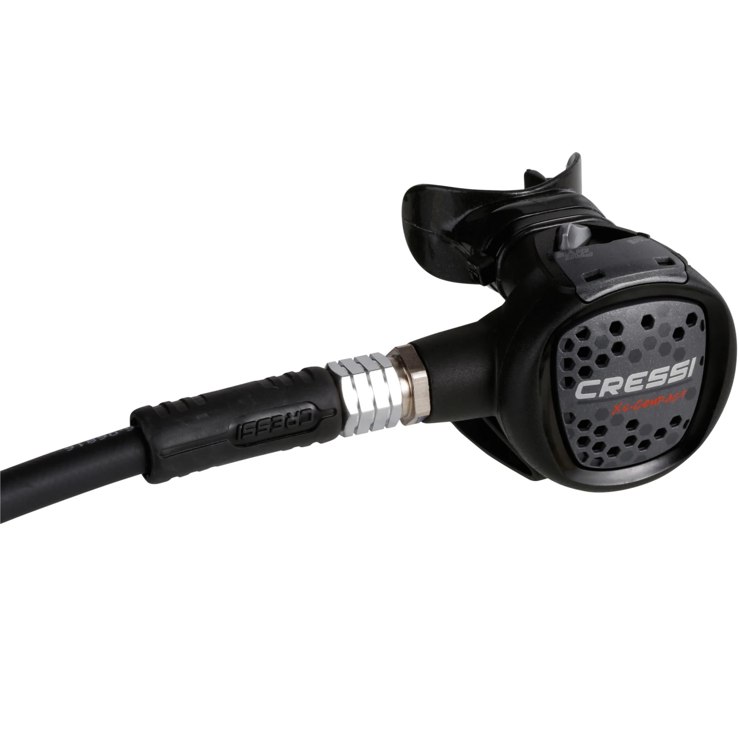 The XS Compact regulator combines a highly reliable core with a safe and effective downstream valve in a revolutionary structure with pioneering characteristics: extremely lightweight (only 135 grams!) to avoid jaw muscle fatigue and improve the range, ergonomic and comfortable design in the mouth and during rapid head movements, anti-scratch treatment, immediately accessible Dive-Predive function.
