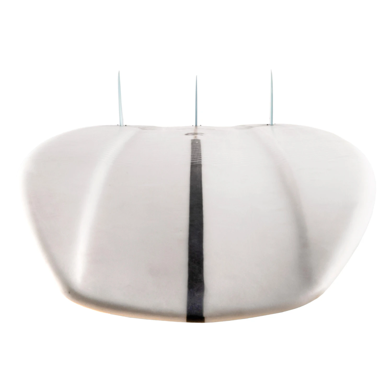 Noseless shape with double-concave channels on the hull, which gives it speed and gentler landings to help the board regain its position on the water after landing.