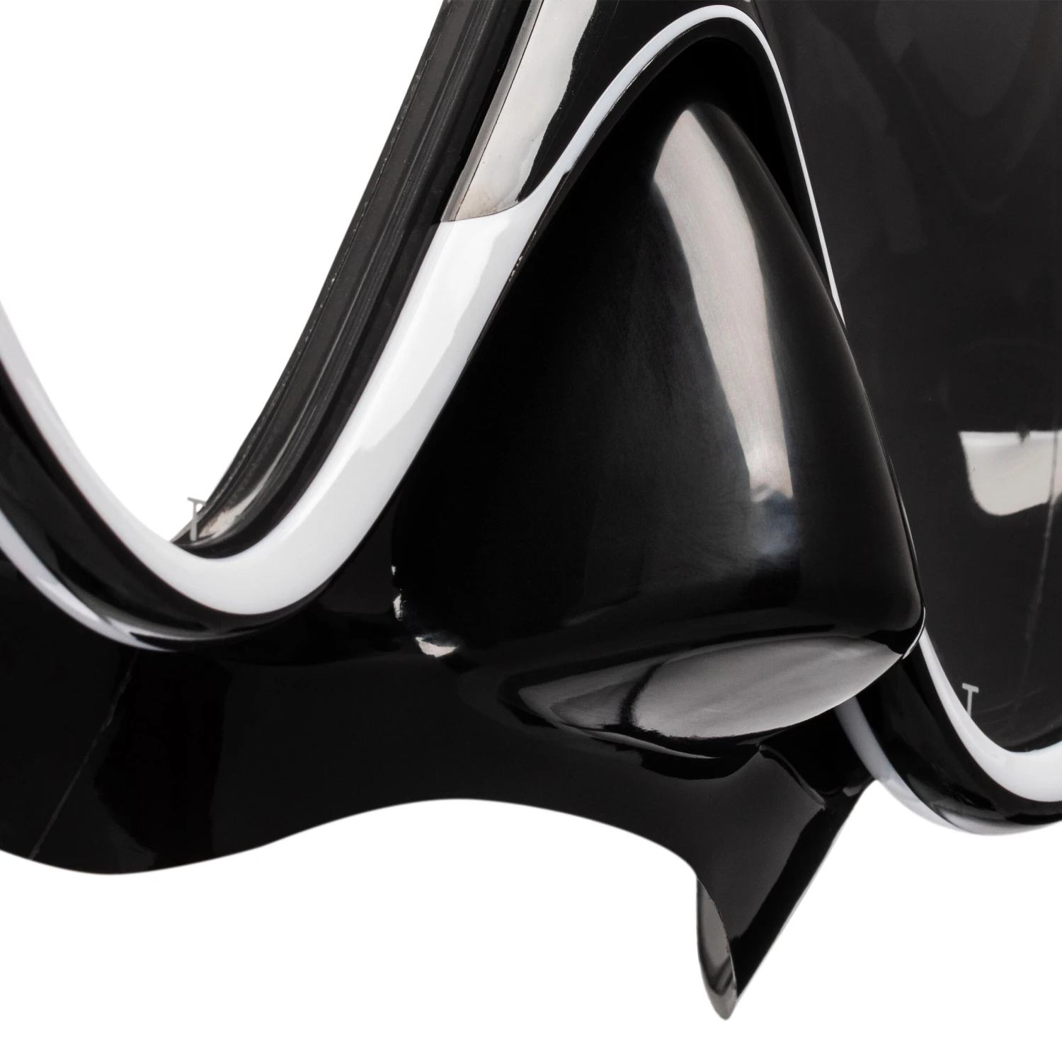 Tri-comfort technology consists of a softer material that is moulded on the frame where it touches the forehead and nose. This flexible material is extremely comfortable for frequent or long dives.