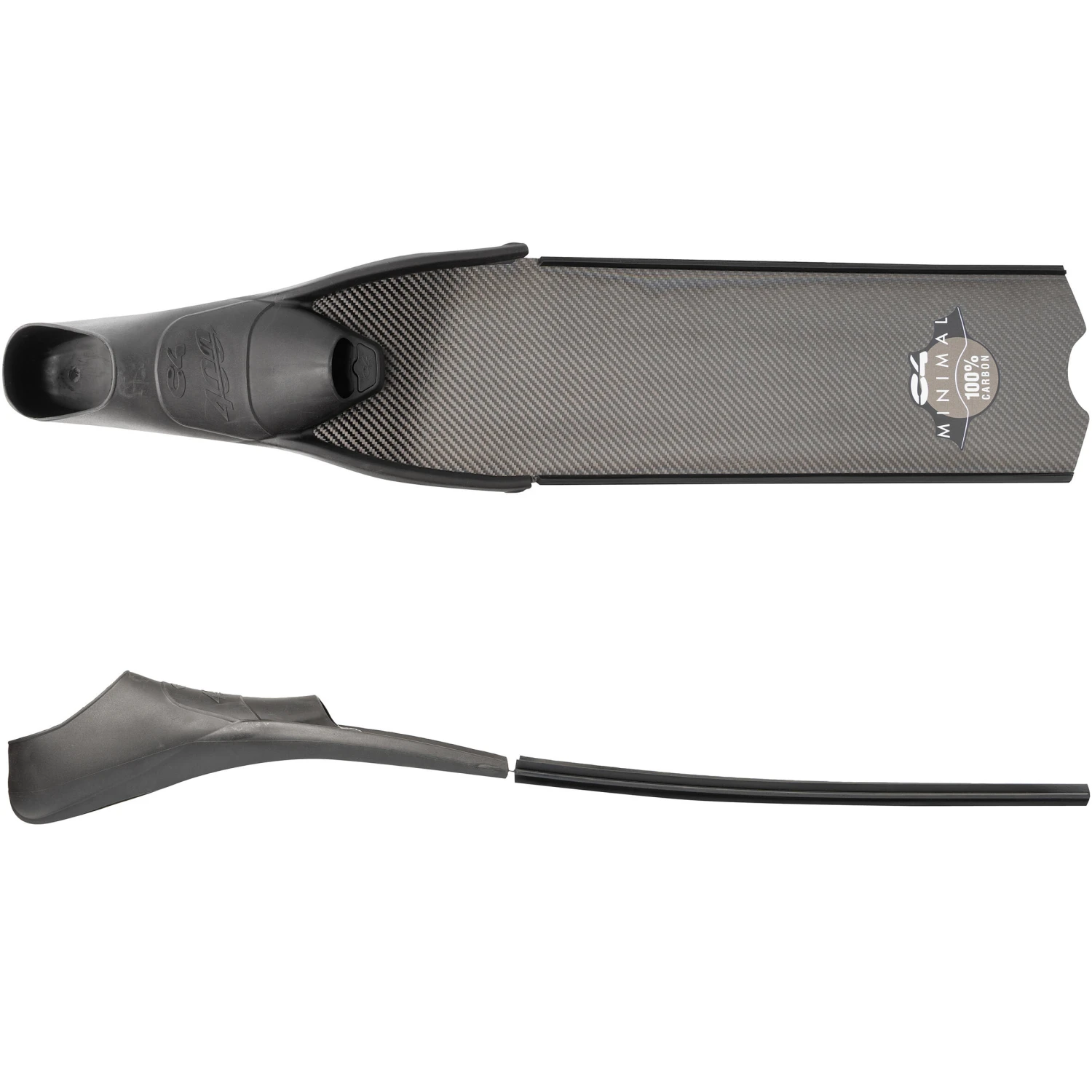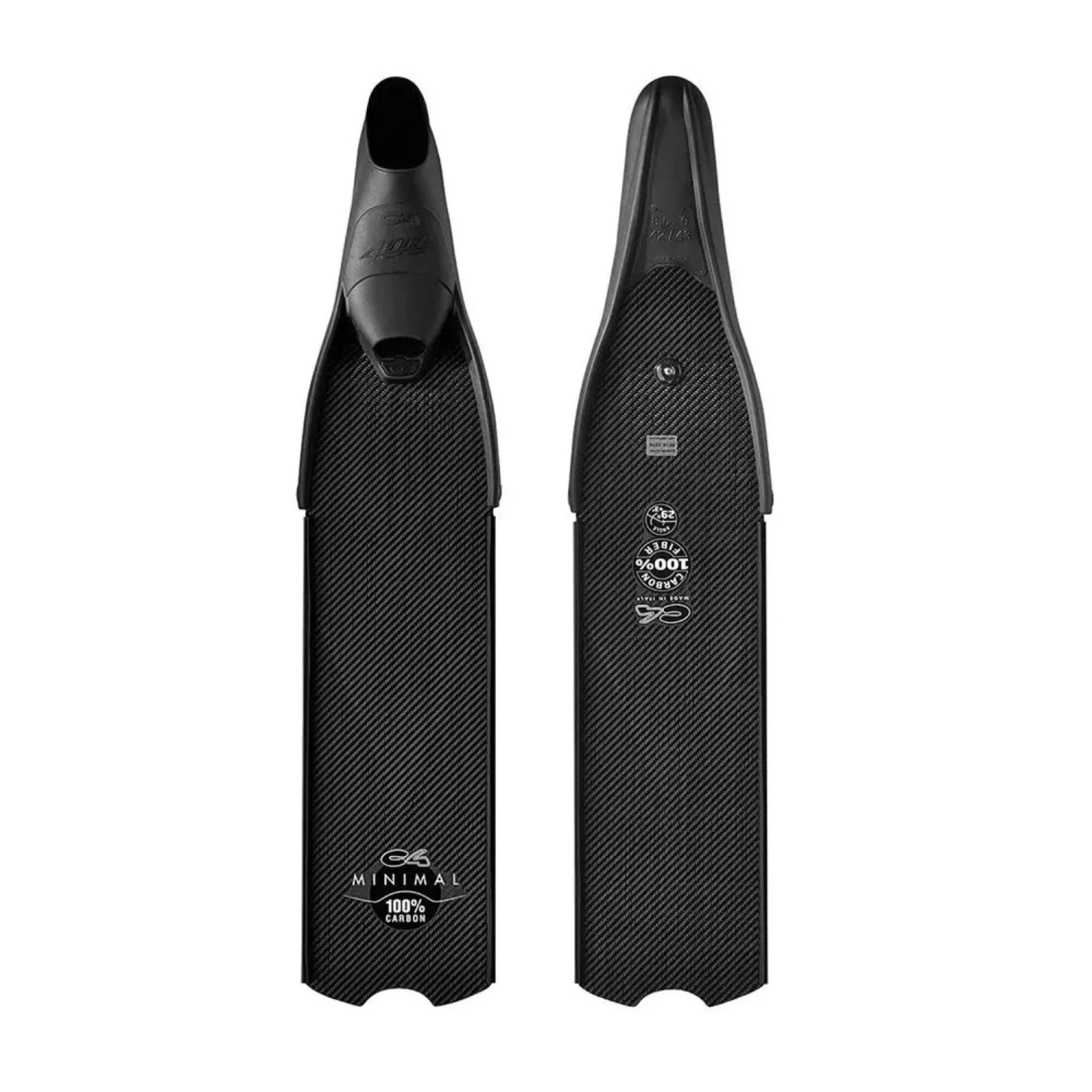The brand C4 has developed this pair of 100% carbon fins for spearfishers looking for the efficiency of carbon at a great priceThe MINIMAL fins are made from 100% T300 carbon fibre. Well-proportioned, they’re fitted with the 400 shoes, resulting in a total weight (per pair) of 1400 g. Excellent value for money!
