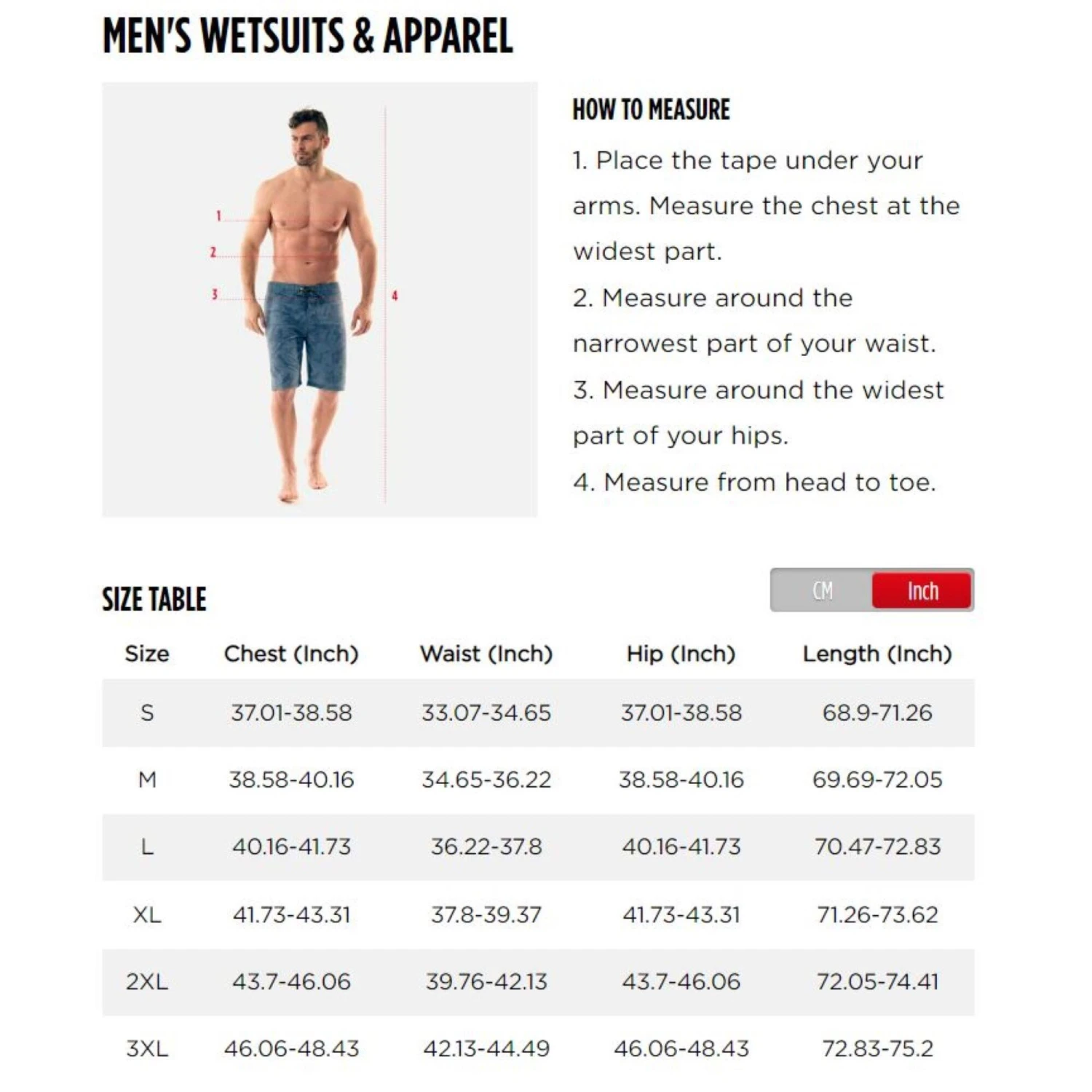 To make the most of the features of your wetsuit, it is necessary to choose the correct size. A surfing wetsuit should be a very tight fit and there should be no visible folds. When dry, it is perfectly normal to feel like it is too tight, this discomfort disappears as soon as the wetsuit gets wet. If you choose a wetsuit that is too big, folds will appear, you will experience irritation and thermal insulation will be reduced (letting in water).
