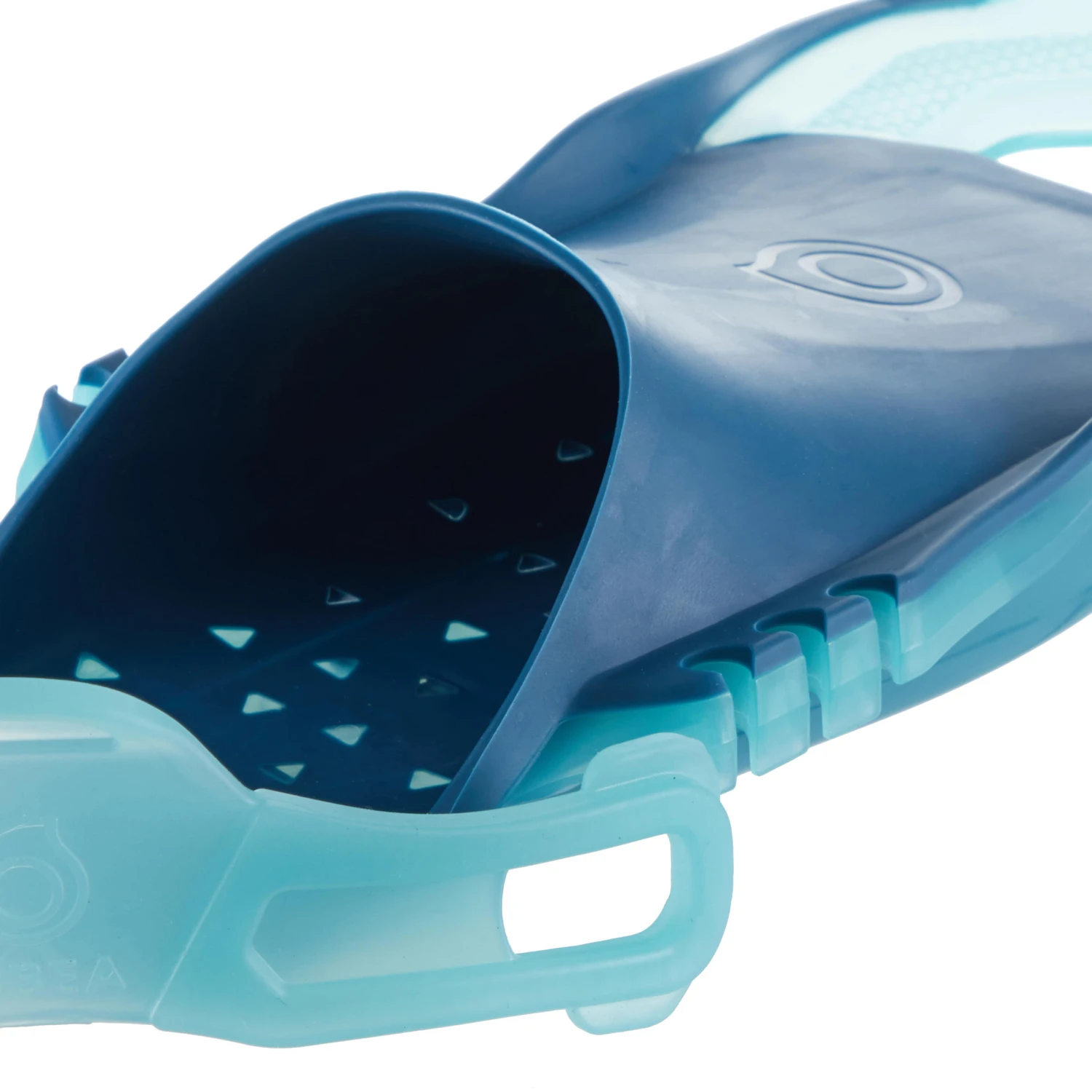 We developed this pair of fins to help kids swim with less effort during their initial discoveries of the coastal seabed.The SNK 100 snorkelling fins are adjustable. One size covers 4 shoe sizes, so the snorkeller can use them for several years. Ideal to start discovering the coastal seabed.