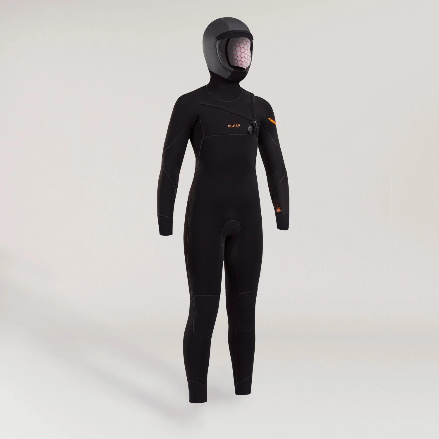 The OLAIAN 900 5/4 mm wetsuit features our built-in hood. This design helps stop as much water as possible from getting in during long sessions in very cold water.