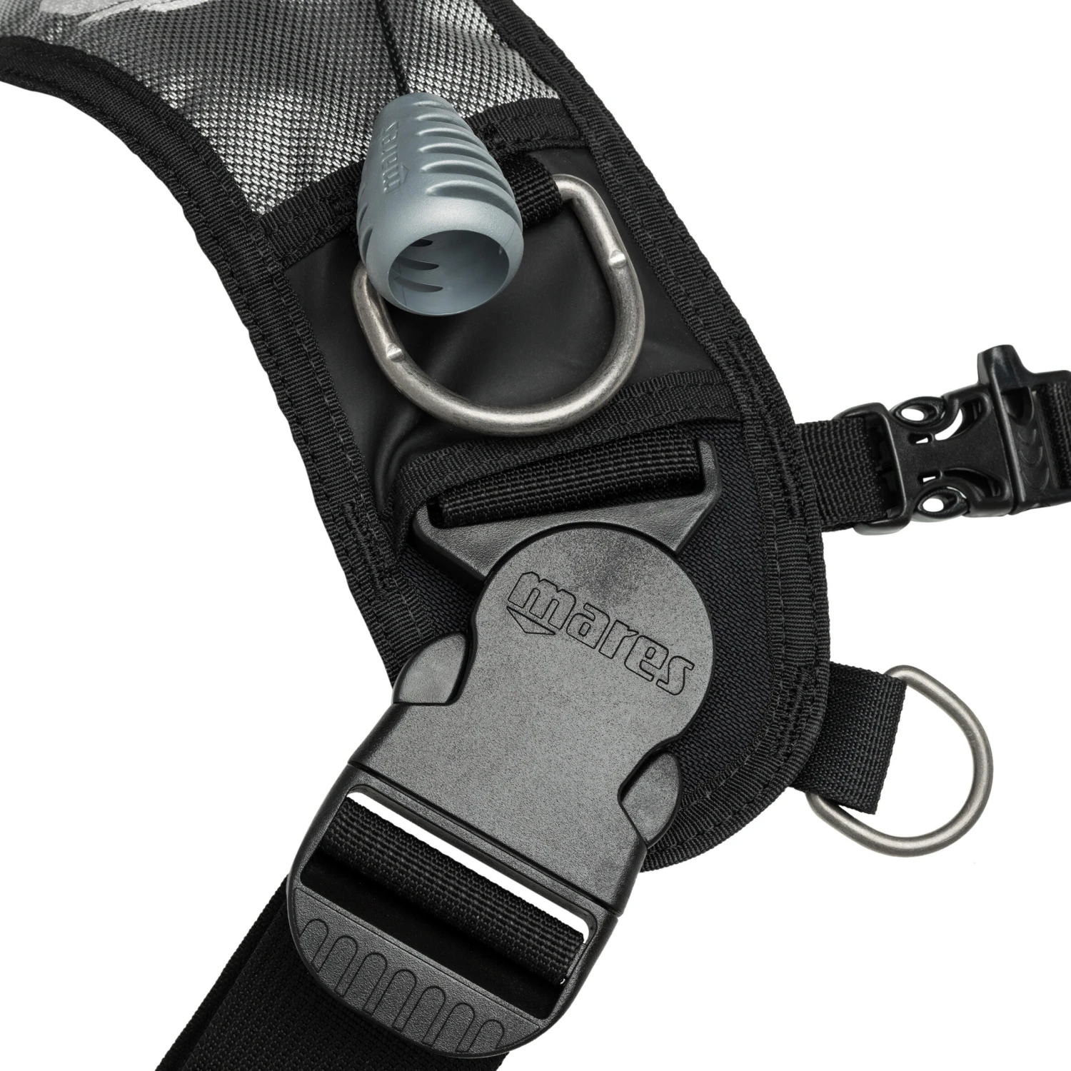 The chest strap is horizontally and vertically adjustable, depending on torso length, body shape or the position of the drysuit valve.