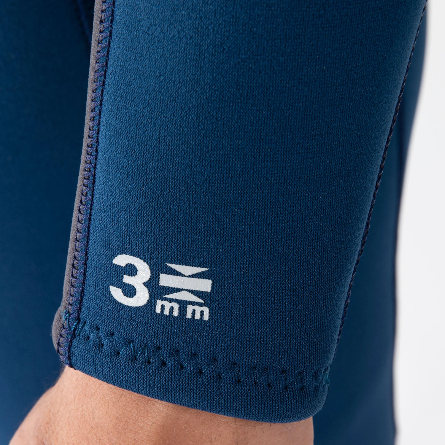 3 mm full-body one-piece wet type with back zip. Seams taped using a GBS (glued and blind stitched) assembly. Once a thin layer of water (that enters through the zip) gets trapped between your body and the diving suit, the water stays warm as it is not replaced. This thin layer of water keeps you warm.