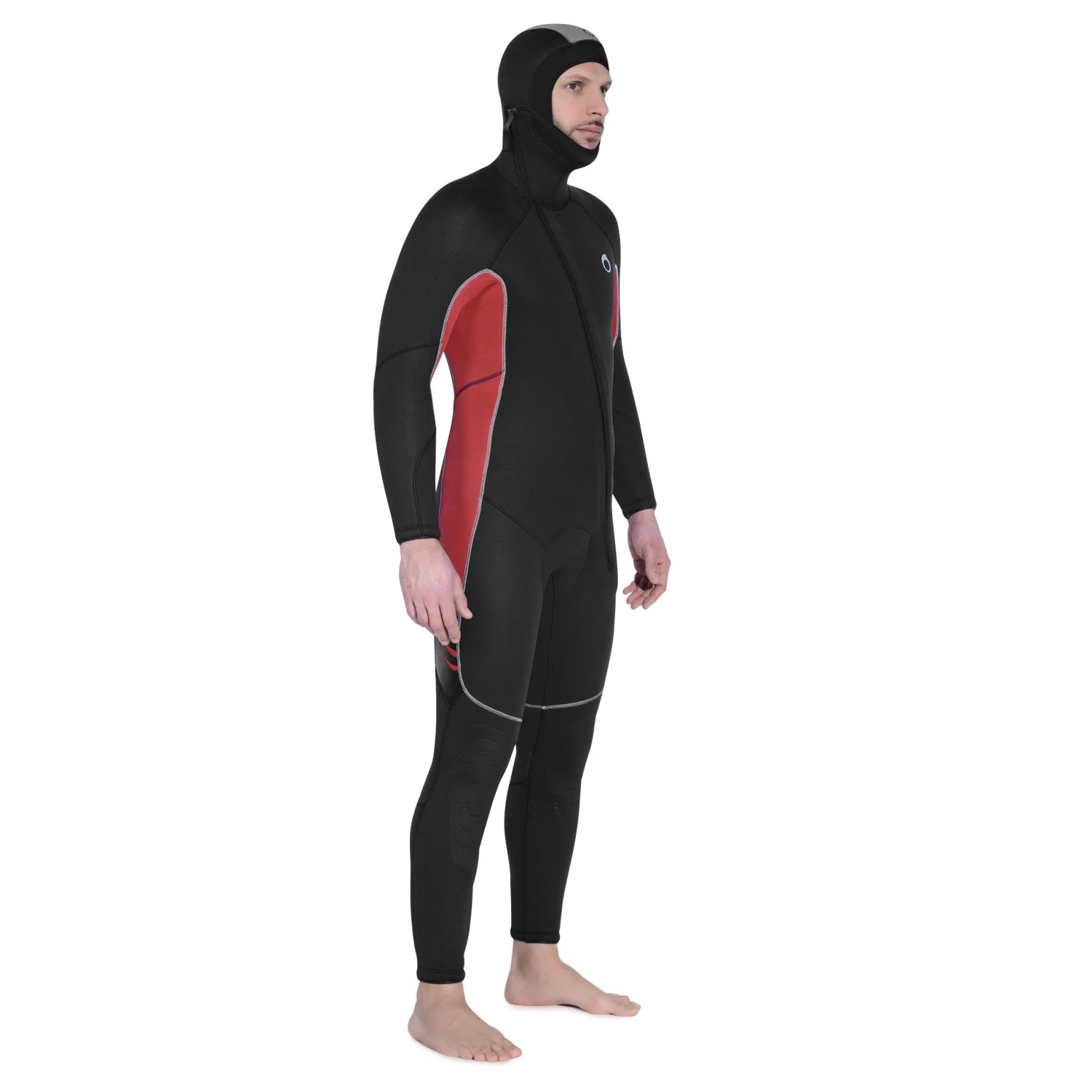 Full-body one-piece wetsuit, made of 100% stretch 7.5 mm panels (with production tolerance). 7 mm neoprene foam, covered with nylon fabric on both sides.