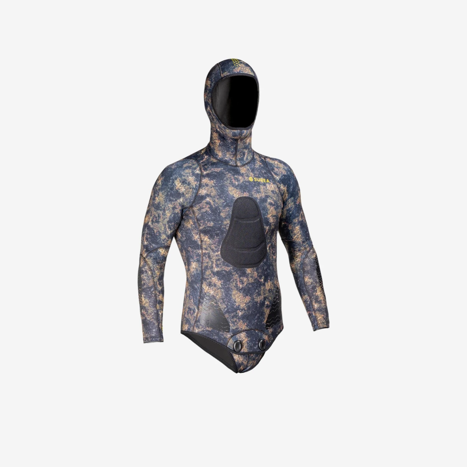 Our Subea brand designed this split neoprene jacket with unstructured or realistic camouflage for intermediate spearfishing divers in temperate waters (16-24°C)This spearfishing diving suit jacket features Subea’s new and exclusive camouflage. It provides warmth, stealth and comfort with its split neoprene, anatomic cut and reinforced chest.