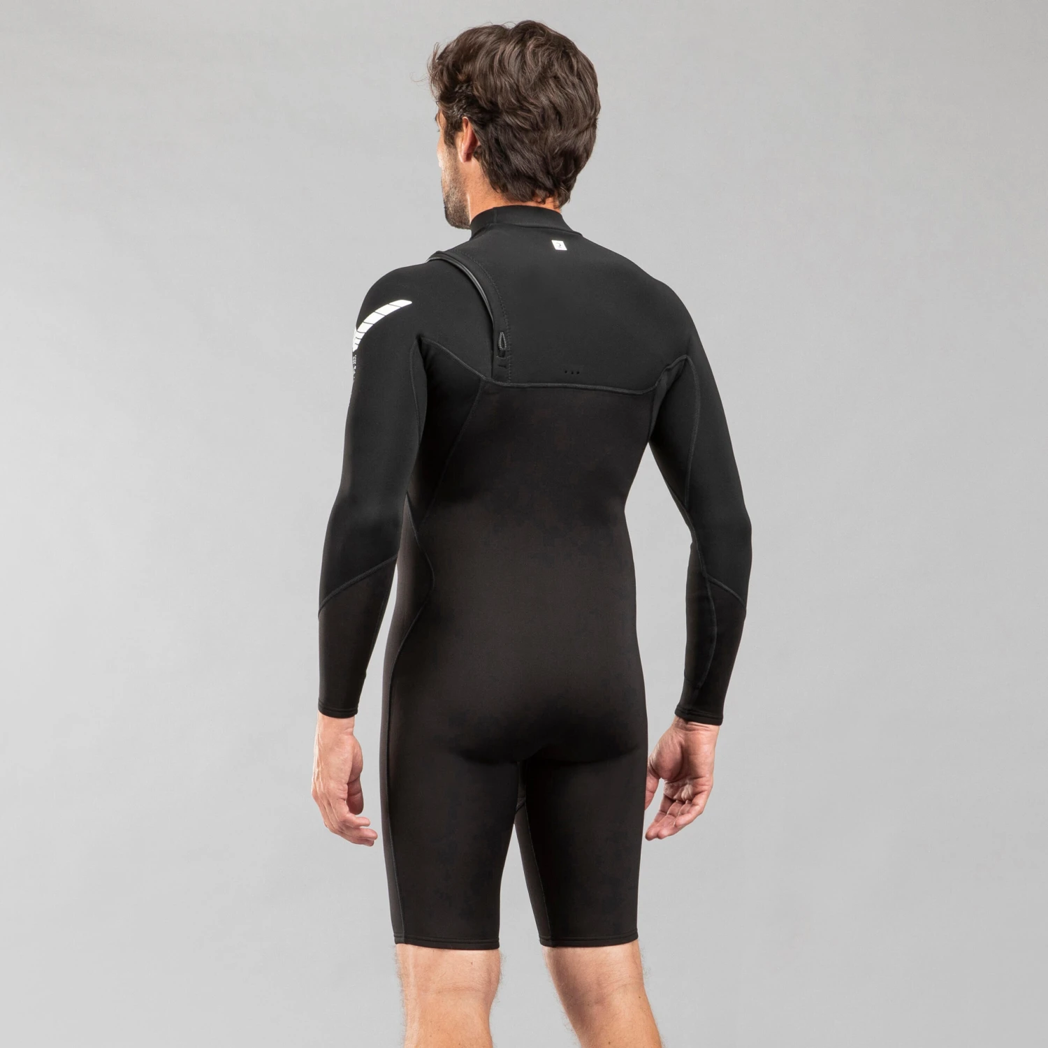 Our team of designers has developed a planet-friendly no-zip shorty for surfing and bodyboarding in warm water for up to 3 hours.With its long sleeves, this shorty suit offers optimal thermal comfort in warm water for sessions lasting up to three hours. Its zip-free design gives you excellent freedom of movement.