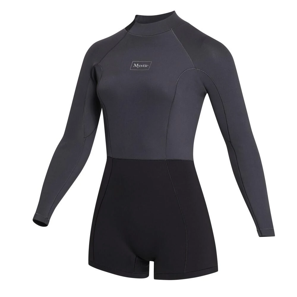 2023 Mystic Womens Lunar 2mm Long Sleeve Back Zip Shorty Wetsuit – Black
