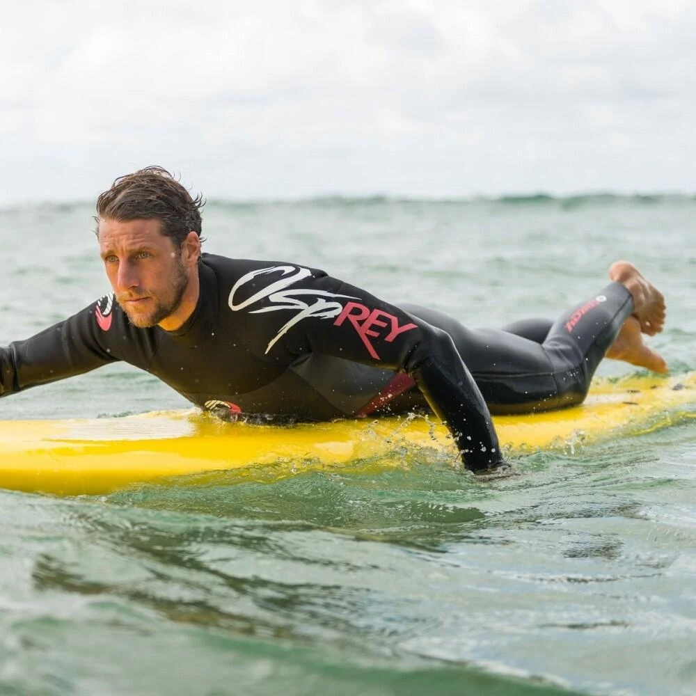 A 3/2mm wetsuit means the Osprey Origin has panels of 3mm insulating rubber, with 2mm panels under the arms, where increased flexibility and stretch for paddling and surfing is required. A 3mm full length wetsuit is the standard thickness for a warm summer wetsuit in the UK and Ireland, and may be suitable right into winter for parts of Southern Europe like France and Spain.