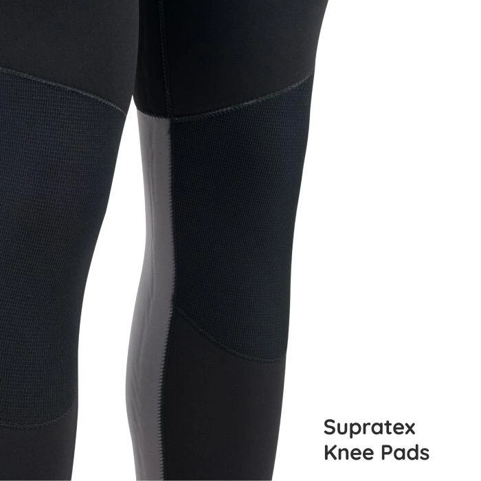 The 5/4mm specification means that the panels are formed of 5mm thick warm insulating rubber, with 4mm panels under the arms, where you need more flexibility and stretch for paddling and surfing. A 5mm full length wetsuit is the standard thickness for an autumn and winter wetsuit in the UK and Ireland, and Europe. This extra neoprene thickness coupled with Supratex® knee pads and flatlock stitching results in the complete winter wetsuit package.