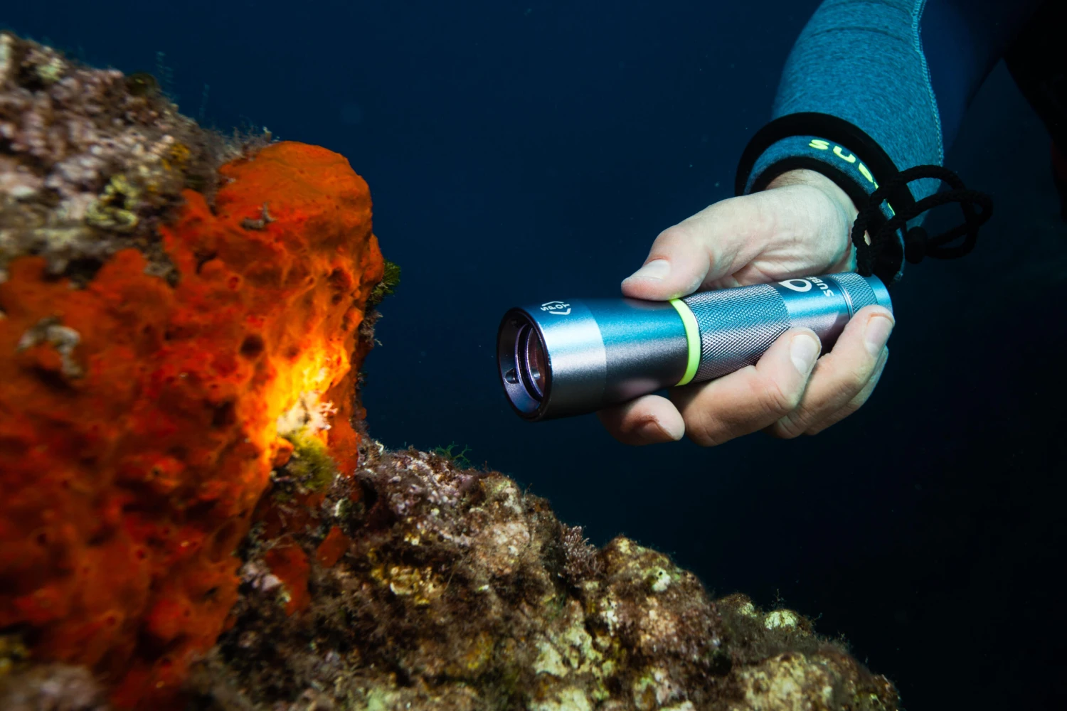 an extra light for scuba divers.Small, but tough! A small back-up diving torch to bring a bit of colour to your dive. Concentrated luminous halo, watertight to 100 m, ideal for diving at night or in deep waters.