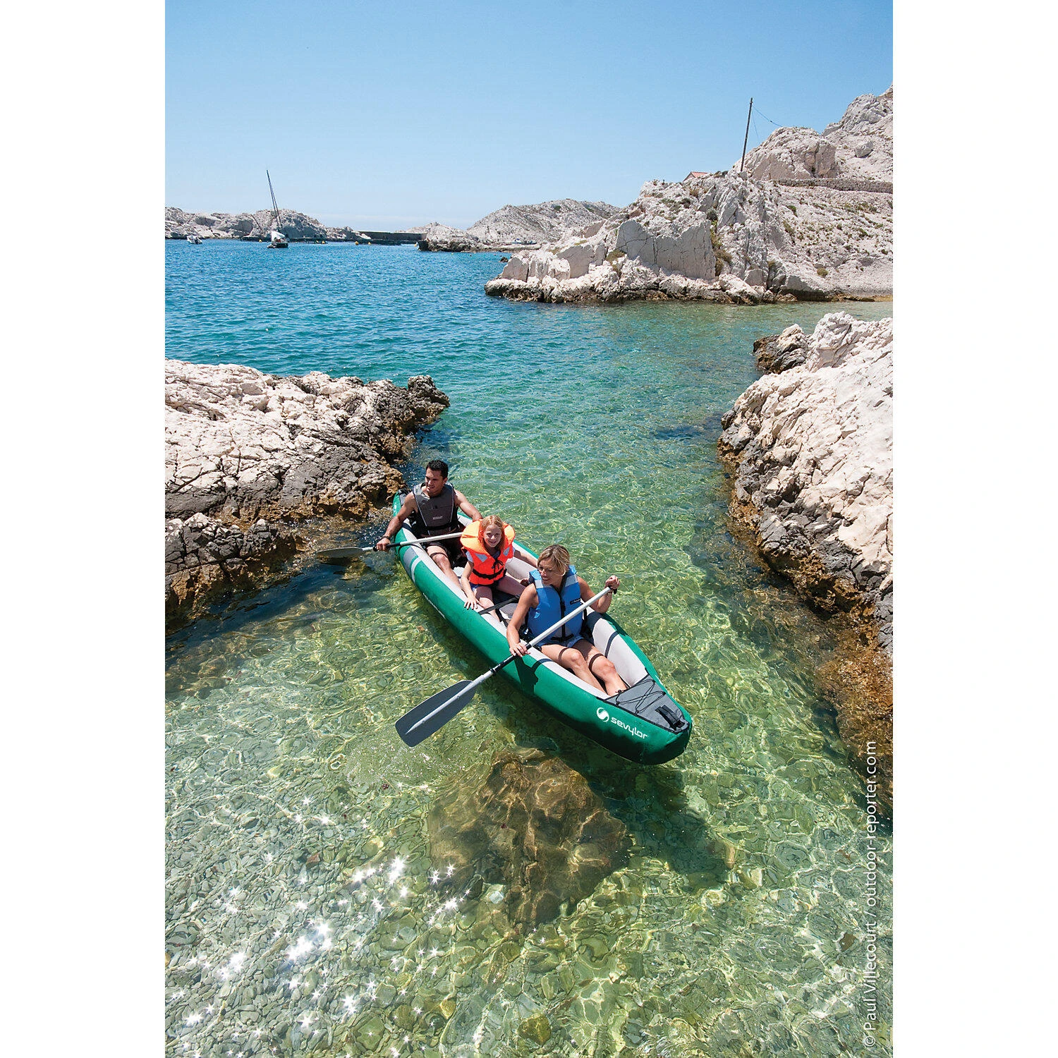 A classic design that encourages fun and family adventure on the water. The high side walls provide comfort and protection while the adjustable, removable seats allow for effortless conversion from a 3-person to a 2-person canoe. Bungee cords and integrated spray decks keep essentials and gear secure while out exploring.