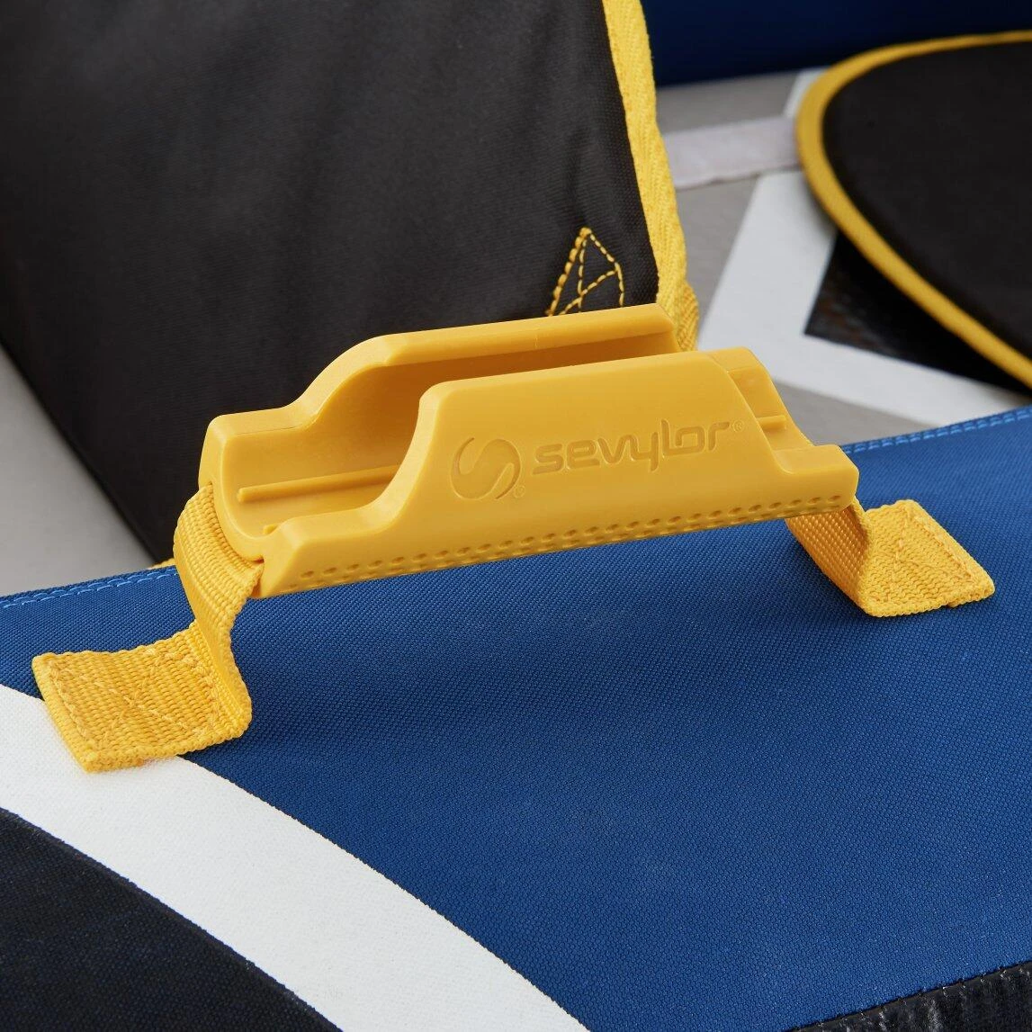 Introducing the newly designed canoe with a drop-stitched floor for enhanced rigidity. Experience high-performance paddling and all-day comfort with this sturdy and durable polyester-covered canoe. It comes with seating for 3 and includes a convenient Dry ‘N’ Store backpack for easy transportation.