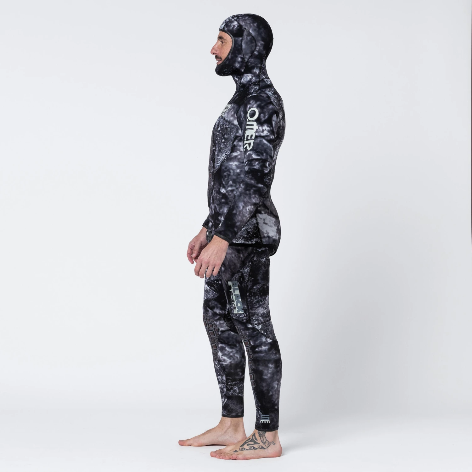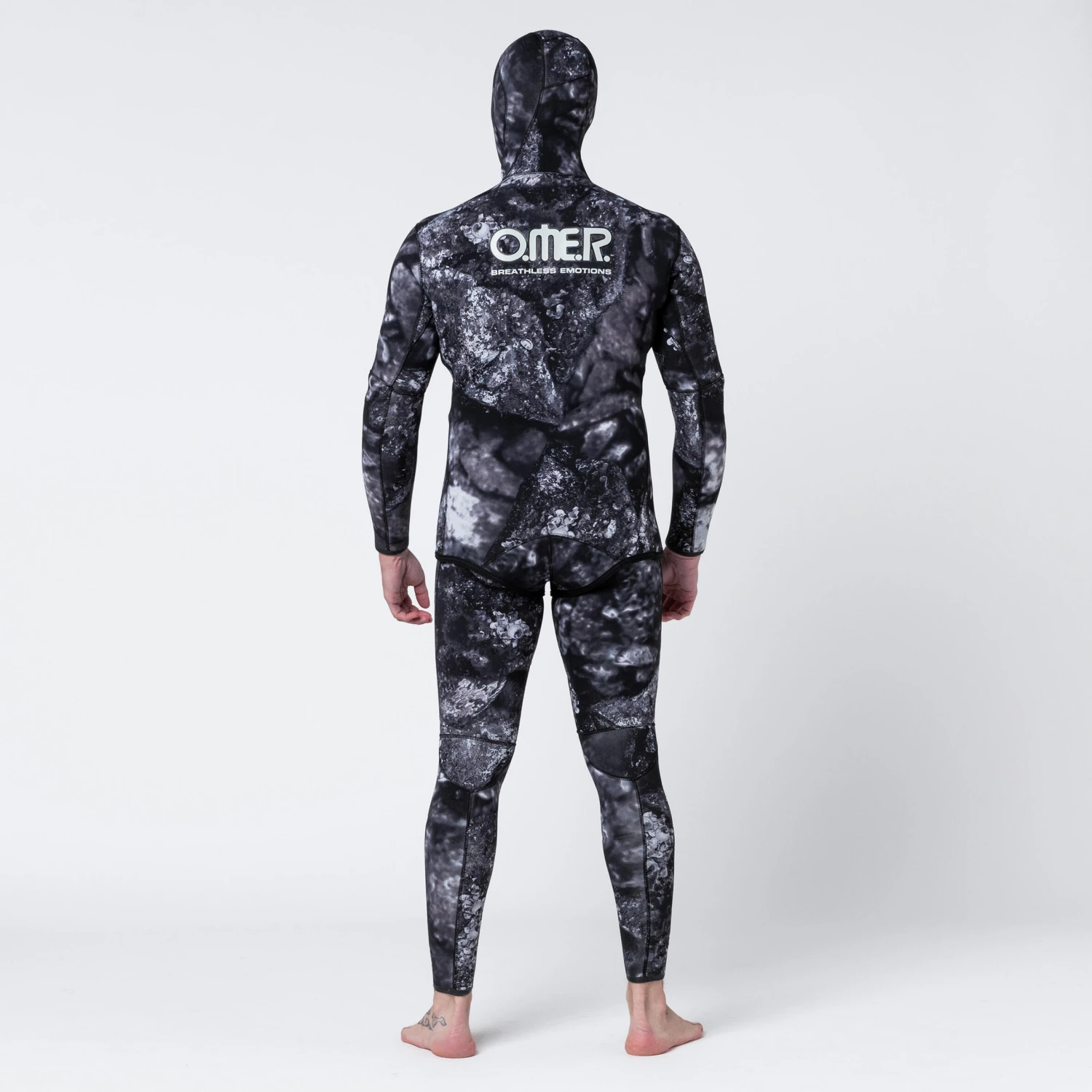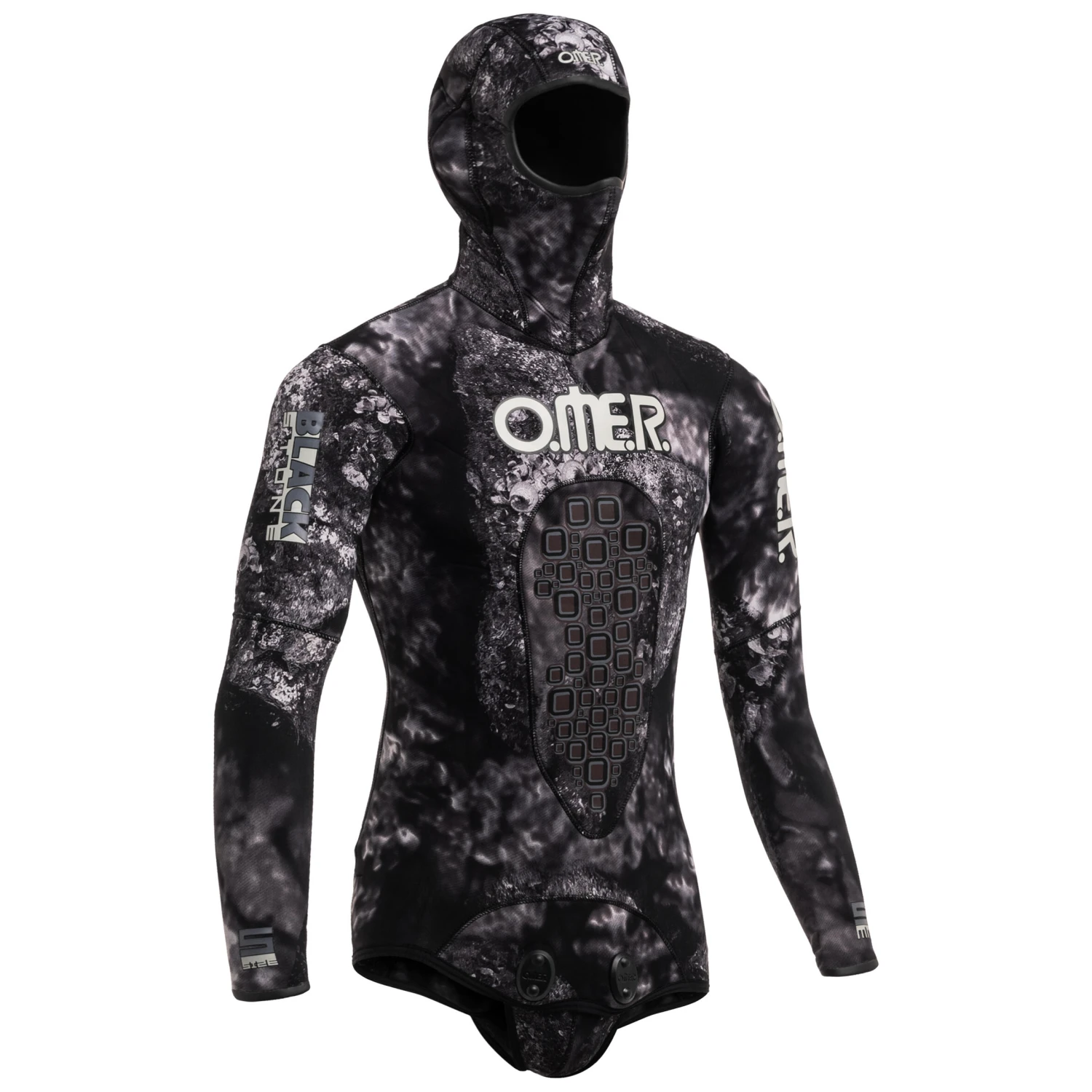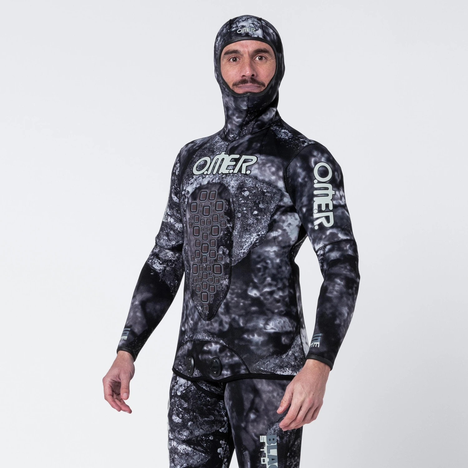 Omer designed this split neoprene jacket with unstructured or realistic camouflage for intermediate spearfishing divers in temperate waters (16-24°C)Split inner jacket, nylon exterior featuring dark camouflage. This design creates a realistic 3D effect. Ultra-stretchy and hydrophobic outer nylon material