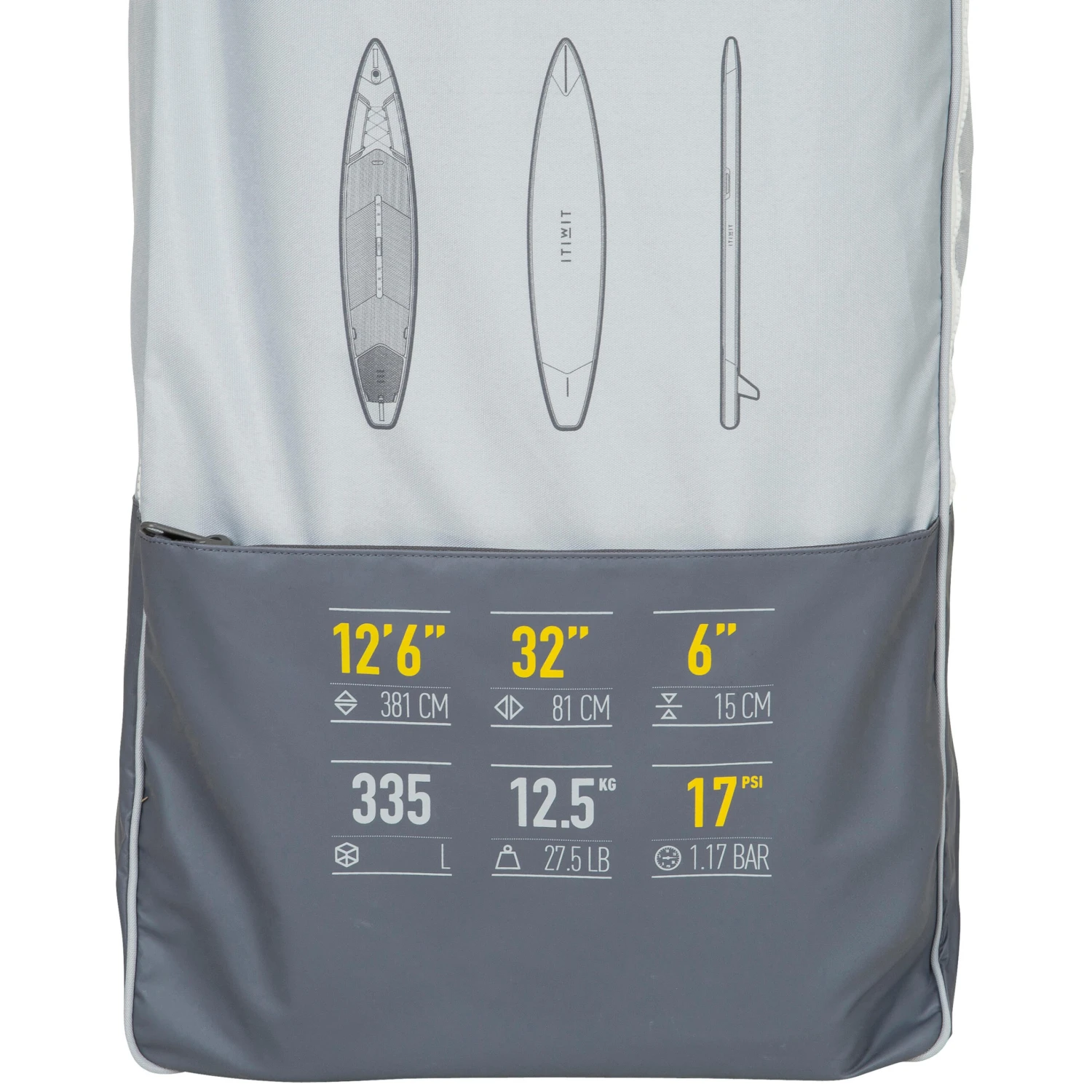 Suited to inflatable stand-up paddleboards with a maximum length of 13’, and a maximum width of 32’