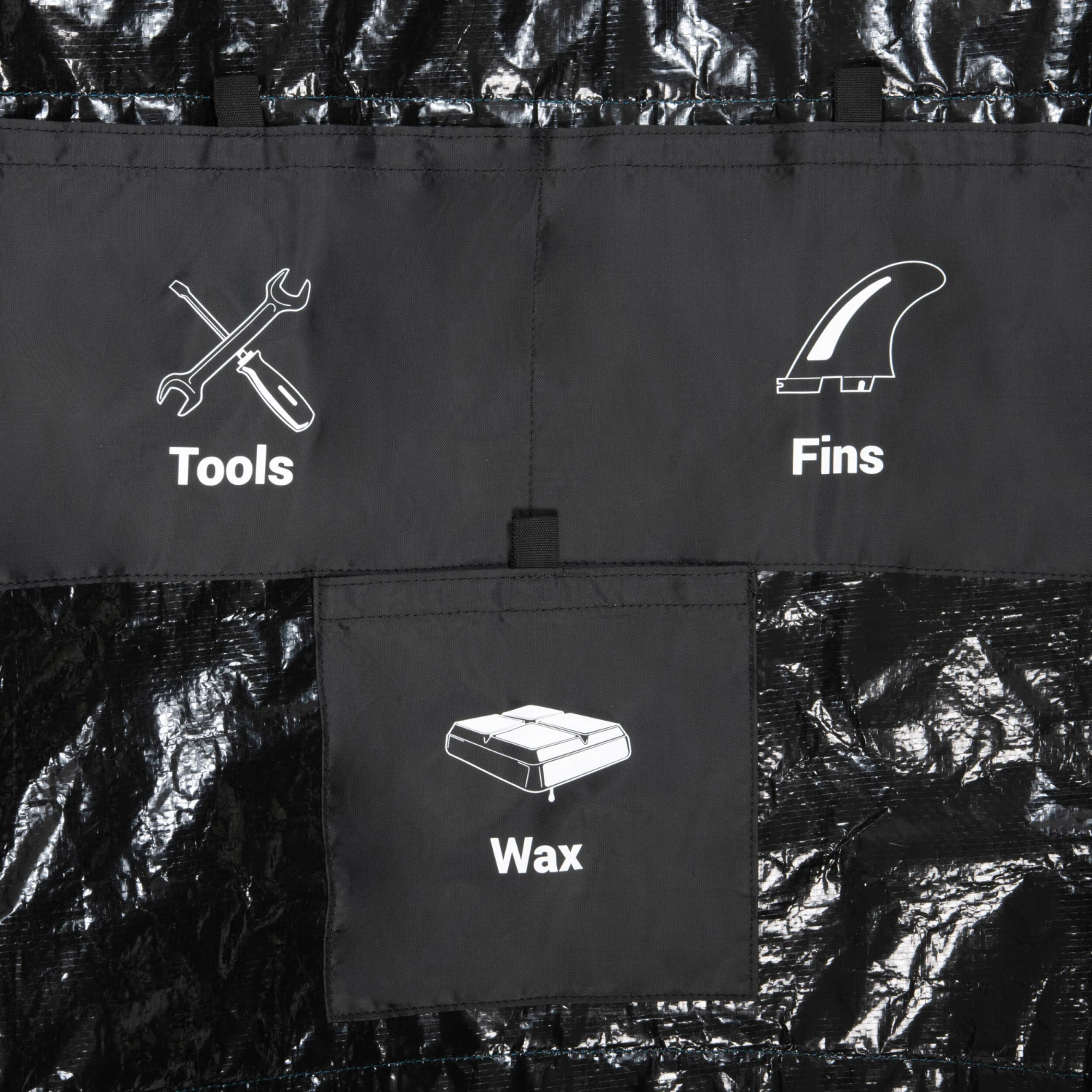 Designed for wing foil or kitesurfers wanting to travel with their equipment up to 6′ (183 cm).This is the board bag you need for travelling! Adapts to the board you are transporting, featuring many tightening straps, pockets and suitable wheels.