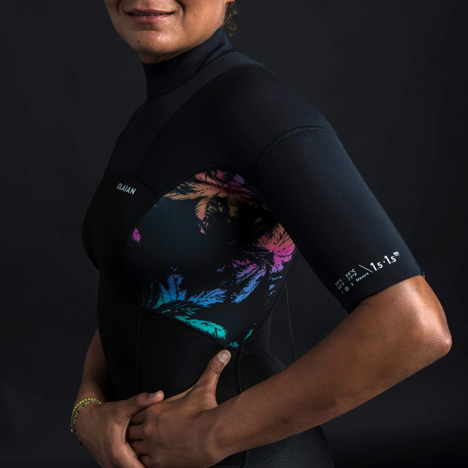 As female surfers of all levels, we designed this shorty for intermediate surfers surfing waves under a meter.Women’ Short-sleeved Neoprene Shorty with 1.5 mm foam, back zip designed for use in warm water > 22°C. Intermediate level. Session length: up to 2 hours.