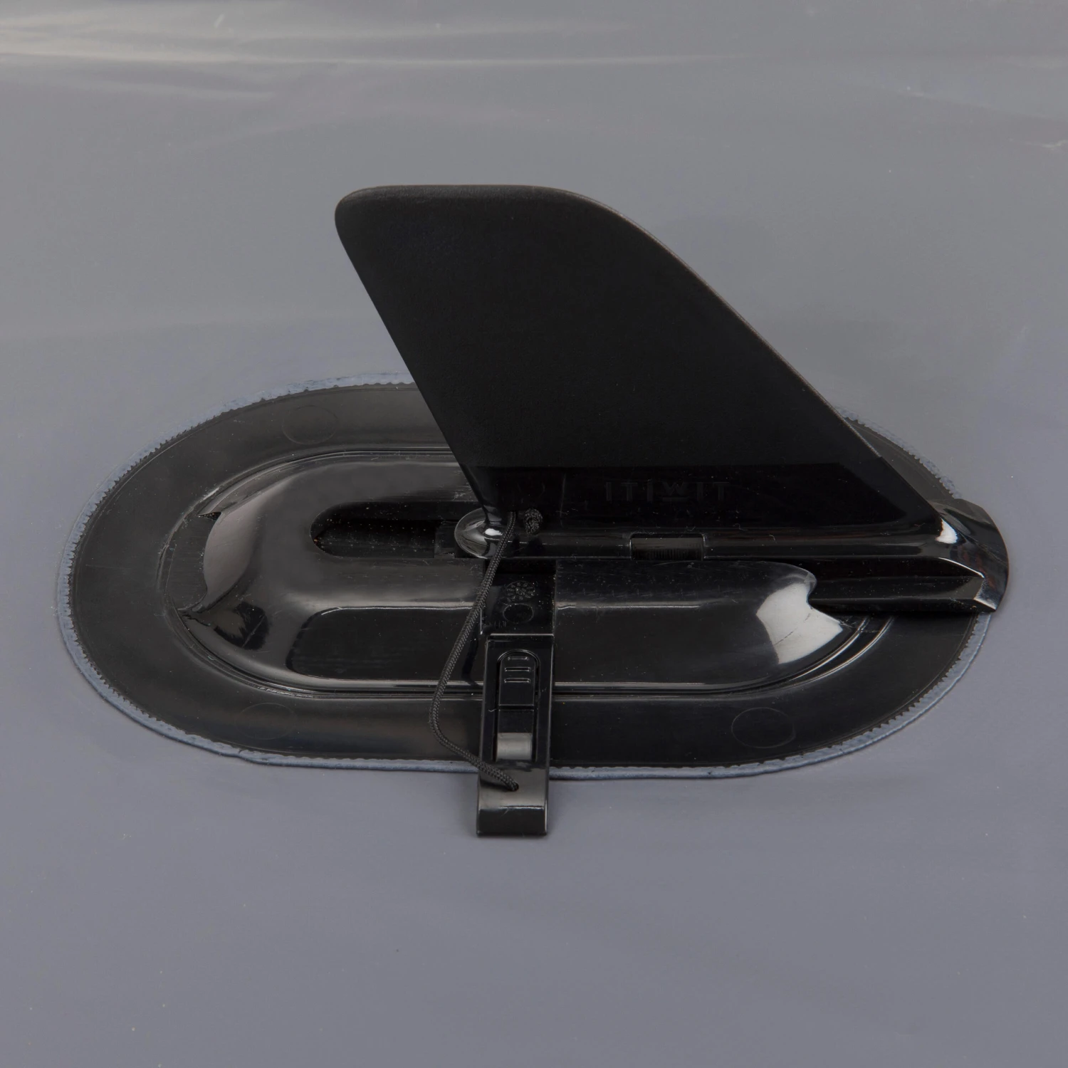 Connect the ITIWIT pump (sold separately) by twisting the pump adapter 1/4 turn and inflate the side tubes to 3 psi. Finish by screwing the cap back on.
